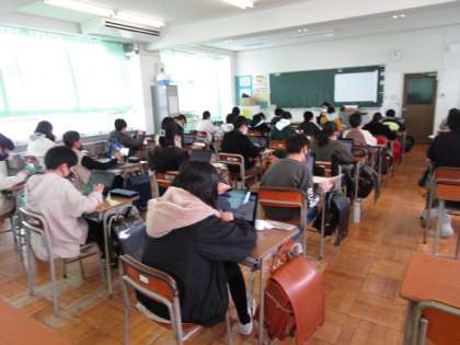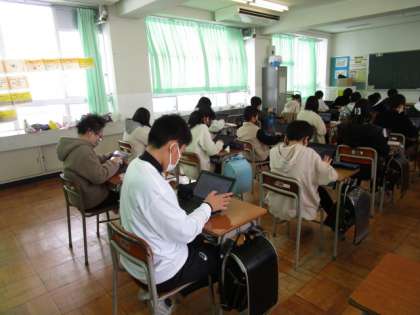 授業では、クロームブックを活用して学習しています。6年生の卒業文集は、クロームブックで作成しています。