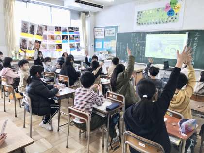 各クラスでは、「怒りの出来事スライド」を見て、担任の先生の温度を当てたり、友達にどんなふうに声をかけたらよいか考えたりして、楽しそうに活動していました。