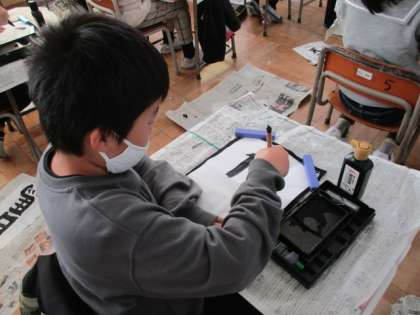 4年生:「一筆一筆慎重に…」1月27日(木)