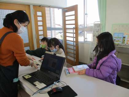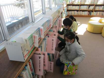 週に1回ほど、図書室に本を借りに行きます。子供たちはその時間をとても楽しみにしています。絵本や図鑑、算数の本等いろいろな本に挑戦しています。