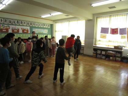 3学期に入って、たてわり班での大なわ8の字跳びはできていませんが、各教室で練習をしています。
