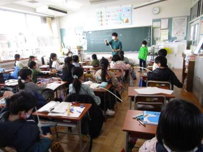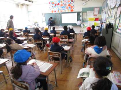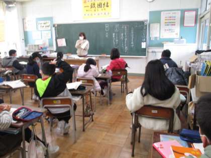授業では、先生の話を聞いて、自分なりの考えをもって学びを進めようとしています。