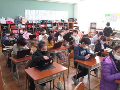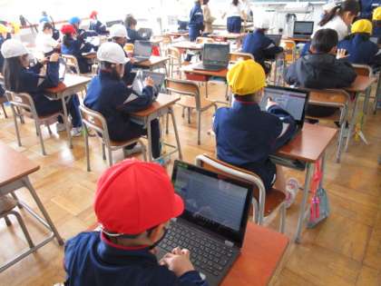 授業では、クロームブックを使っています。クラウド教材の問題を解いたり、タイピング連取をしたりしています。