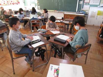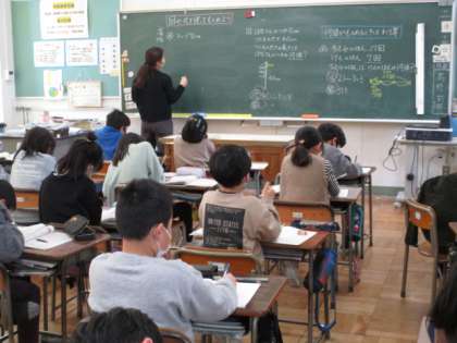 授業では、ノートをかいたり、グループで話合ったりして集中して取り組んでいます。