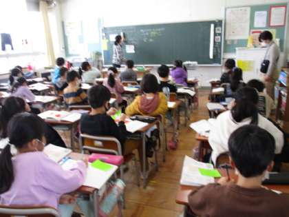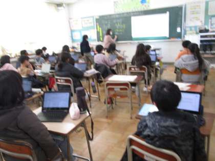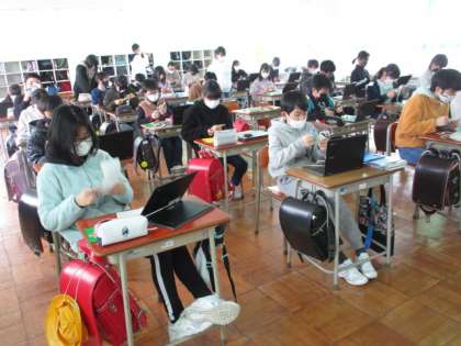 授業では、話をしっかり聞いたり、クロームブックを活用したりして集中して取り組んでいます。