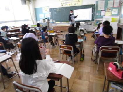 授業では、話を聞いて自分の考えをもったり、ノートに考えをしっかり書いたりして、集中して取り組んでいます。