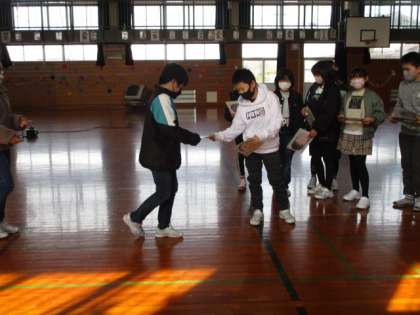 「6年生さんありがとう集会」では、「感謝の気持ちを伝え、笑顔で卒業をお祝いする」を目当てとして取り組みました。6年生にその気持ちが伝わっていたようです。6年生が退場するときに、たてわり班からのメッセージを渡しました。