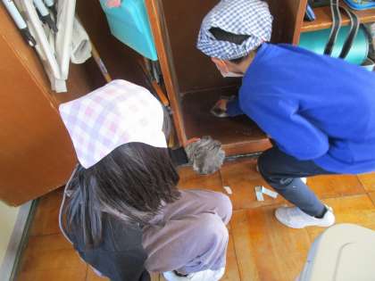 明日のワックスがけに向け、今週は「清掃強化週間」です。今日も自分たちで声をかけあって、隅々までピッカピカにしてくれました。「綺麗だと気持ちいいね」「すっきりした」と、気持ちもさわやかになりました。