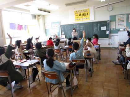 授業では、グループで話合ったり、発表したりして集中して取り組んでいます。