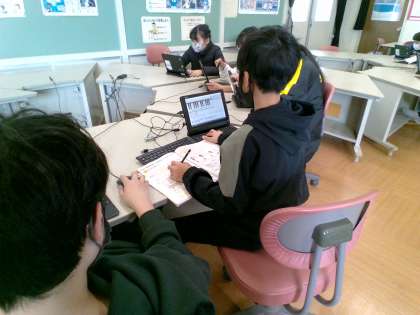 今年は感染症対策のため、リコーダーが使えません。そこで、ハイブリッドパソコンにあるソフトを使って音の確認をしました。