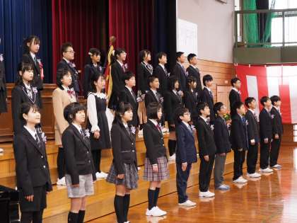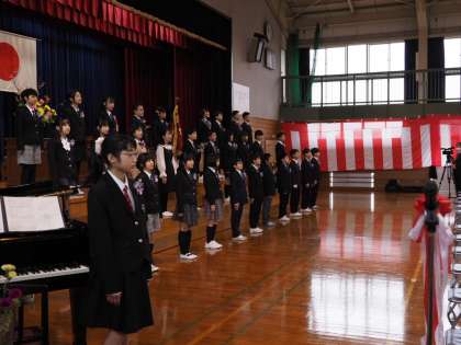 卒業式では、ステージで、距離を保ちながら「門出のことば」を発表することができました。