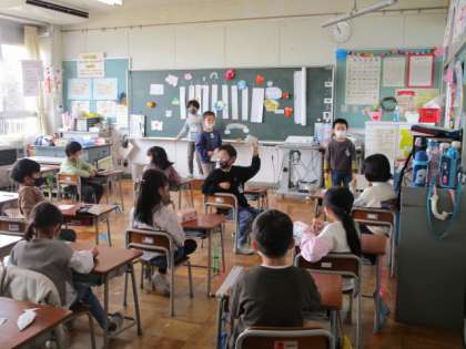 学級活動でおたのしみ会をしているクラスもあります。自分たちで企画をして、クラスの交流を深めています。