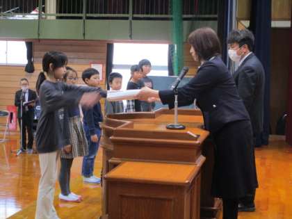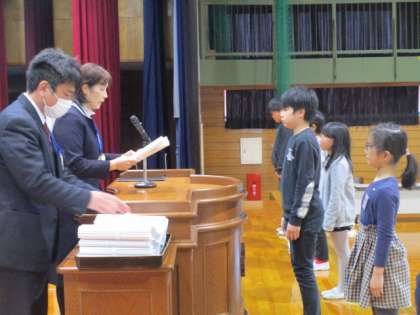 令和3年度修了式1:3月24日(木) 公開日 2022/03/24 更新日 2022/03/24 今日の新保っ子 令和3年度の修了式を行いました。新型コロナウイルス感染症拡大防止のため、体育館には各学級の代表児童のみ参加し、その他の児童は各学級等で参加しました。
