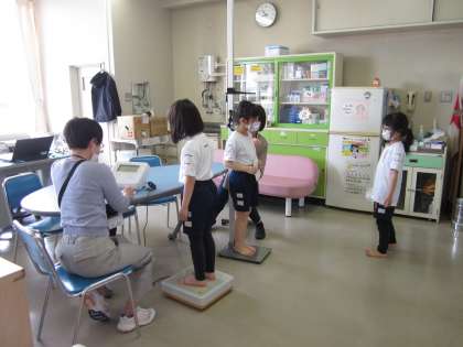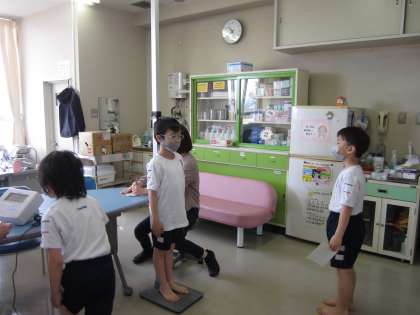 身体測定を行いました。結果は視力測定も終わった後にお渡ししますので、ご確認ください。