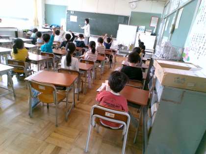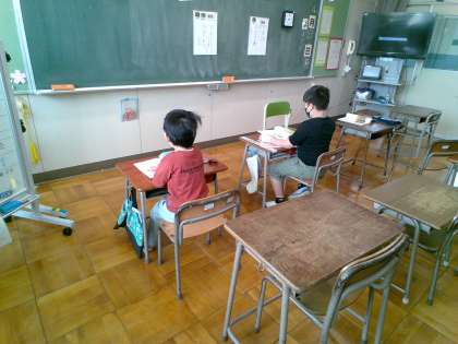 さくら1組に加わった2人の1年生。小学校での学習をがんばっています。今日は、1年1組で、生活科の学習も行いました。