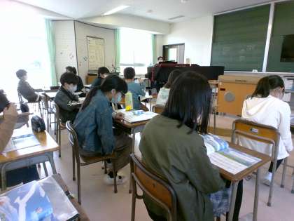 今回学習した「つばさをください」は、昨年度の6年生卒業お祝い週間に、5年生が放送した曲です。二部合唱になっていて、低音パートが少し難しいのですが、うまく音が重なるように、練習しています。卒業式に、きれいな歌声を家の方に聞いていただけるよう頑張りましょう!