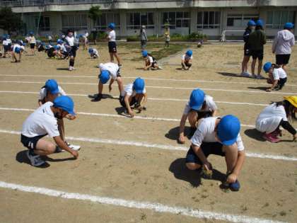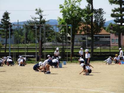 今日は、2回目の応援全体練習をグラウンドで行いました。練習の後、運動会で力いっぱい競技できるように草むしりをして環境を整えました。