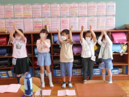 一生懸命応援している2年生の声を聞いて、教室に6年生が来てくれて、声を掛け合いながら一生懸命練習しました。運動会が楽しみです!