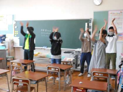 赤団は全体で集まっての応援練習がなかったため、教室で自主的に応援練習!やる気いっぱいでした。