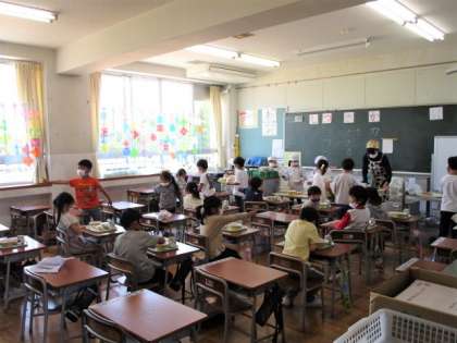 今日の献立は、黒糖コッペパン、鶏肉のマーマレードソースかけ、イタリアンサラダ、ビーンズポタージュ、牛乳 です。