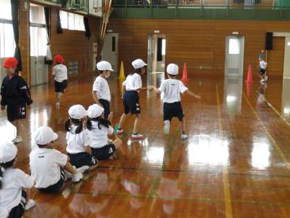 子供たちのリクエストにこたえ、運動会で高学年が競技していたリレー(折り返しリレー)を行いました。バトンの受け渡しはまだまだうまくできませんが、みんなでバトンをつなぐリレーの楽しさを味わうことができました。