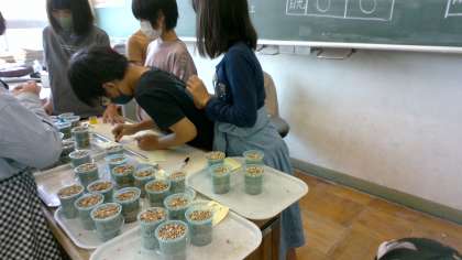 理科の学習では、「発芽した後の植物がもっと大きく成長するために必要なものは何か」について、自分の予想を立て、実験を開始しました。