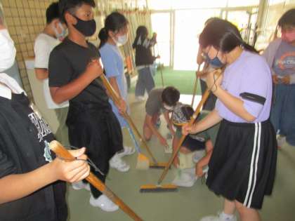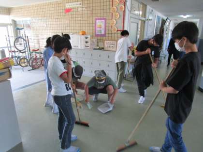 避難訓練後に、玄関や廊下に落ちた砂を6年生が進んで掃除してくれました。「やったらいいな」と思ったことに自主的に取り組める姿がすてきでした。