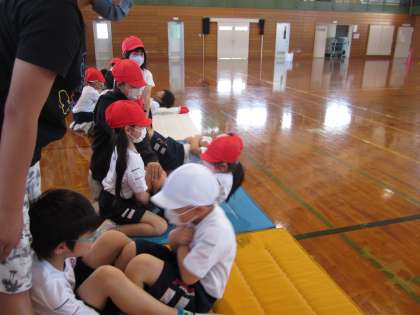 今日の体育の時間は、スポーツテストの「反復横跳び」と「上体起こし」に取り組みました。数を数えるために、5年生さんがお手伝いにきてくれました。2年生は、5年生がきてくれるのがとっても嬉しくて、終始にこにこしていました。