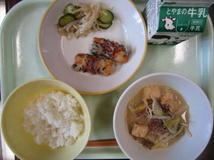 今日の献立は、ご飯、ちくわの南部揚げ、甘酢和え、すきやき、牛乳 です。