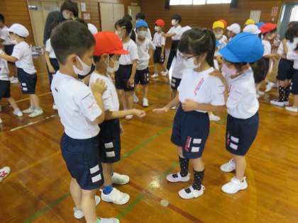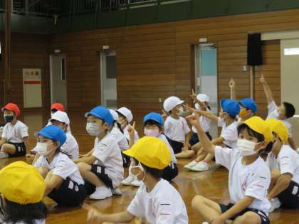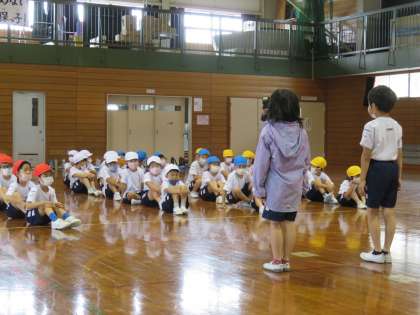 2年生さんから集会に招待されました。初めは緊張気味でしたが、「クイズ」「じゃんけん列車ゲーム」と、目も心もきときとさせて、集会を楽しんでいました。2年生さん、ありがとう。