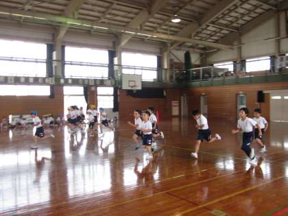 子供たちの「もう1回やりたい!」のリクエストに応え、シャトルランの2回目をしました。1回目でやり方やコツをつかみ、たくさんの子供が記録を伸ばしていました。70回を超えた子供もいました。<6月3日>