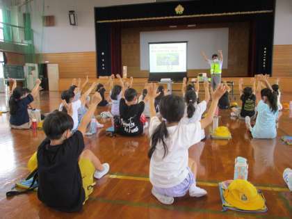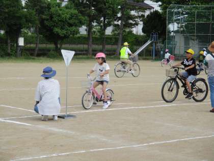 今日は、自転車に乗るときは左側から乗ることや、暗くなったらライトをつけることなど、自転車を安全にのるために大切な事を学びました。子どもたちは、これからもきまりを守って楽しく自転車に乗りたいと話していました。