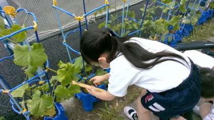 国語科の学習で、生活科で育てている野菜の観察をしました。