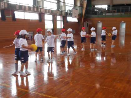 今日の体育は、「ボールに慣れよう」というめあてで、ペアになってボールをパスしたり、転がしたりする活動をしました。相手がうまくキャッチできるように、ボールの投げ方を工夫している姿が見られました。
