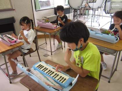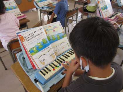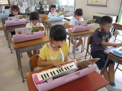 音楽科の学習では、鍵盤ハーモニカの練習をしています。