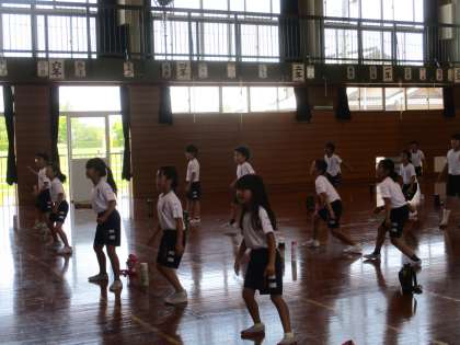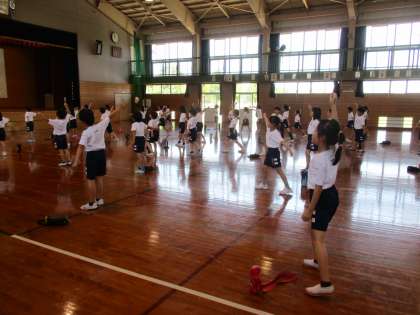 今日は、富山グラウジーズのダンス教室で、緑黄色社会の「Mela!」を元気よく踊りました。子どもたちは、汗を流しながら、一生懸命に踊っていました。