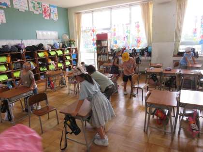 7月8日(金) 掃除を頑張っています:1年生