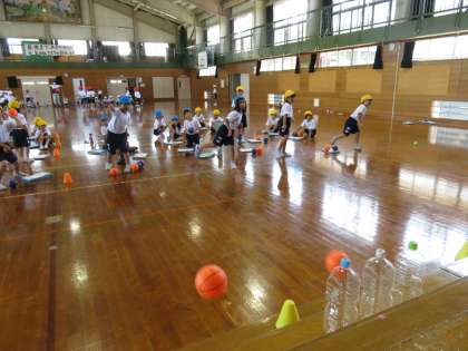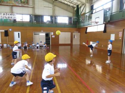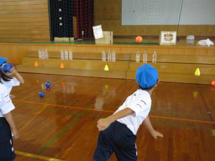 体育科でボール投げ遊びをしています。ペットボトルを的にボールを投げたりドッチボールをしたりして楽しみました。投げ方も板に付いてきて、コントロールよく投げようとしたり強い玉を投げようとしたり、考えながら投げる様子が見られます。