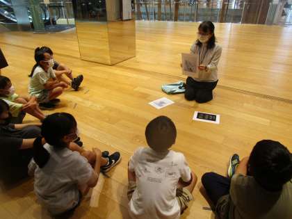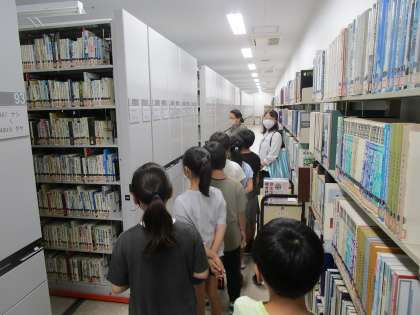 ガラス作品を見て感じたことを伝え合ったり、図書館の書庫を見学したりしました。