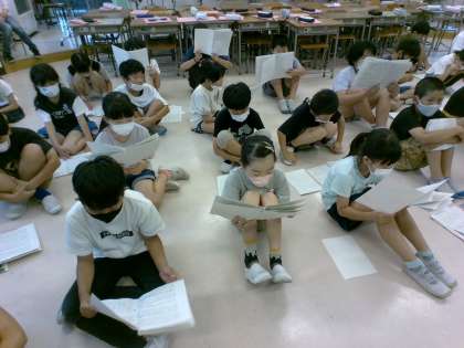 連合音楽会に向けて、4年生合同で歌の練習を行いました。