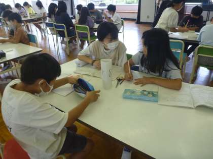 9月2日に、子どもの村へ行くに当たり、活動内容を確認したり、係分担を決めたりしました。学年で協力して行う野外活動への期待が膨らんでいきます。