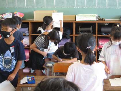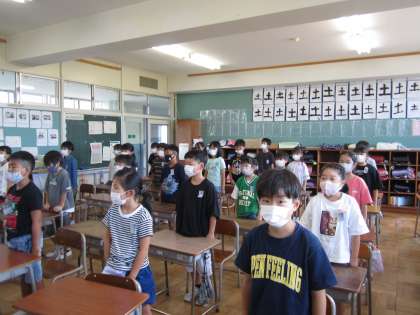夏休みが終わり、子どもたちが学校に帰ってきました。子どもたちは夏休みを十分に楽しんだようで、みんな真っ黒に日焼けしていました。今日は、久しぶりに会った友達と楽しく交流していました。