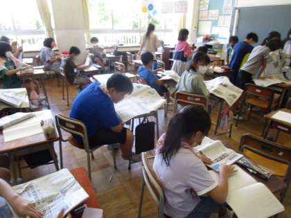 5年生は国語の学習で新聞を読む学習をしています。