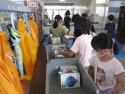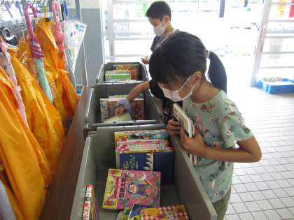 今日は2学期最初の自動車文庫でした。子どもたちは、どの本にしようかと目を輝かせながら本を選んでいました。