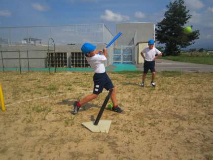 4年生はこれから「ティーボール」に取り組んでいきます。「バットを振る」という動きはなかなか難しく、ボールが当たると子供たちはうれしそうにしていました。