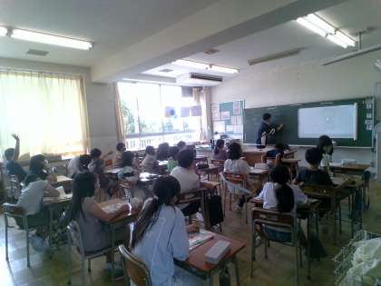 2組は外国語の時間に人物を紹介する表現を学習しました。出てくる言葉も難しくなってきたので、丁寧に、意味を確認しながら進めています。