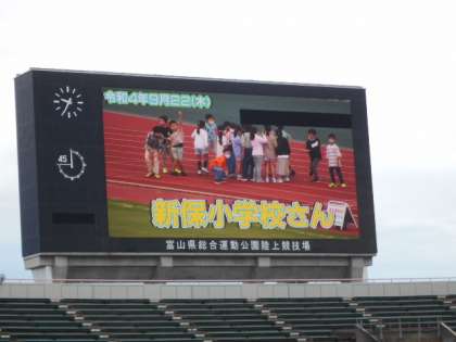 陸上競技場のスクリーンに、自分たちの姿が映ってびっくり!陸上競技場内のすてきをたくさん知ることができました。