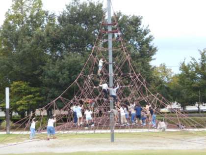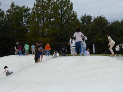 その後、屋内運動場を見学した後、ふわふわドーム等の遊具で思い切り遊んで学校に戻ってきました。とても楽しかったのでしょう、見付けたすてきをカードにぎっしりと書いていました。