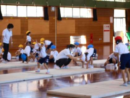 今日は、富山市スポーツ派遣事業で講師の先生を迎えして出前授業がありました。(1,2年生マット運動)先生に教わりながらどんどん上達していくことが嬉しい、笑顔いっぱいの楽しい体育の時間になりました。