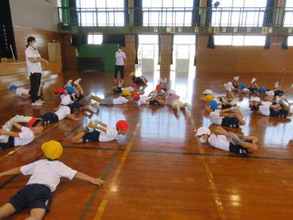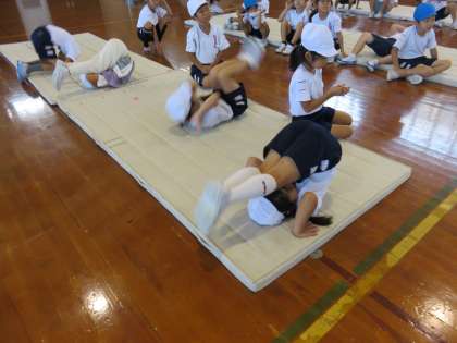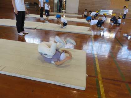 前回りは体育の時間にもやっていましたが、後ろ回りは初めてでした。ポイントを押さえた指導のおかげで、どの子も上達しました。